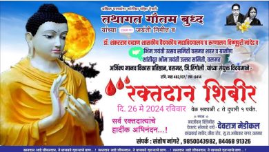 (प्रतिनिधी वसमत) दि.24.मे.2024 शासकीय रक्तदान शिबीर आहे.सर्व दानशुर रक्त दात्यास विनंती आहे सदरील रक्तदान शिबीरास भव्य करूण प्रत्यक्ष कृतीतुन तथागतास…