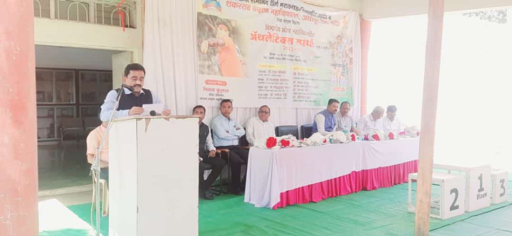 विद्यार्थ्यांना आपल्या विद्यार्थी जीवनात अनेक स्पर्धांना सामोरे जावे लागते. प्रत्येक स्पर्धेमध्ये विद्यार्थ्यांची कस लागते, स्पर्धा असली की यश अपयश हे असतेच पण विद्यार्थ्यांनी क्रीडा स्पर्धेत खेळाडू भावना जोपासली पाहिजे.खेळातून जीवनातील संघर्षाची प्रेरणा मिळते असे मत स्वामी रामानंद तीर्थ मराठवाडा विद्यापीठाचे कुलगुरू माननीय उद्धवराव भोसले यांनी केले. ते शंकरराव चव्हाण महाविद्यालय,अर्धापूर द्वारा आयोजित स्वामी रामानंद तीर्थ मराठवाडा विद्यापीठ, क्रीडा परिसर येथे विभागीय आंतर महाविद्यालयीन ॲथलेटिक स्पर्धा-2023 च्या उद्घाटन प्रसंगी बोलत होते. कार्यक्रमाच्या अध्यक्षस्थानी श्री शारदा भवन एज्युकेशन सोसायटी, नांदेडचे सहसचिव प्राचार्य डॉ.रावसाहेब शेंदारकर होते. व्यासपीठावर विद्यापीठाचे क्रीडा संचालक डाॅ.मनोज रेड्डी, डाॅ.माधव शेजुळ,डाॅ.भास्कर माने, इम्तियास खान, डाॅ. महेश बेंबडे, डाॅ. महेश वाखरडकर व महाविद्यालयाचे प्रभारी प्राचार्य पठाण जे.सी. क्रीडा संचालक डॉ. विक्रम कुंटूरवार यांची प्रमुख उपस्थिती होती. पुढे बोलताना कुलगुरू म्हणाले की विद्यापीठ नेहमी विद्यार्थी हिताचेच अनेक निर्णय घेते. विद्यापीठ आखलेल्या धोरणानुसारच कार्य करीत आहे त्यामुळेच विद्यापीठाचा नावलौकिक होत आहे. या विद्यापीठातून अनेक विद्यार्थी घडत आहे असे ते म्हणाले.