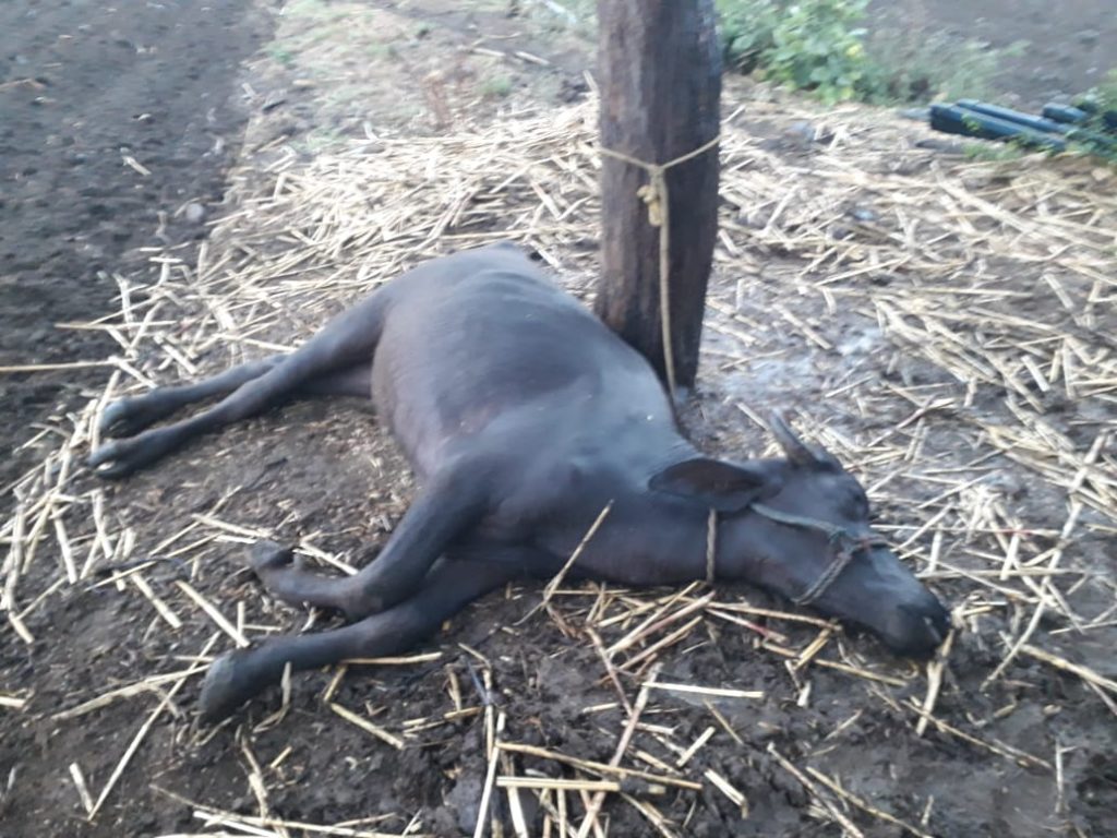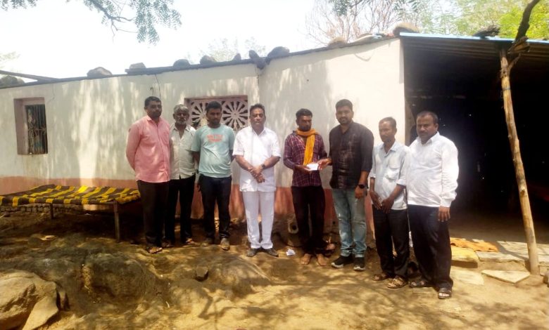 अहमदपूर :- अहमदपूर तालुक्यातील काही दिवसांपासुन मेघगर्जनेसह विजा व अवकाळी पाऊस पडत आहे.त्यात अहमदपूर तालुक्यातील आजणी गावतिल शेतकरी रंगनाथ घाटोळ यांची म्हैस विज पडून मयत झाली.कळताच घाटोळ कुटुंबाची सभापती मंचकरावजी पाटील साहेब व शेतकरी पुत्र युवराज भैय्या पाटील यांनी भेट घेत शेतकऱ्यांच्या दुखाःत शेतकऱ्यांसोबत खंबीरपणे उभे राहुन शेतकर्यासाठी शासनाच्या मदत होईल तेव्हा होईल असे म्हणत शेतकरी पुत्र युवराज भैय्या पाटील यांनी फुल नाही फुलाची पाकळी मदत करून धीर दिला.!