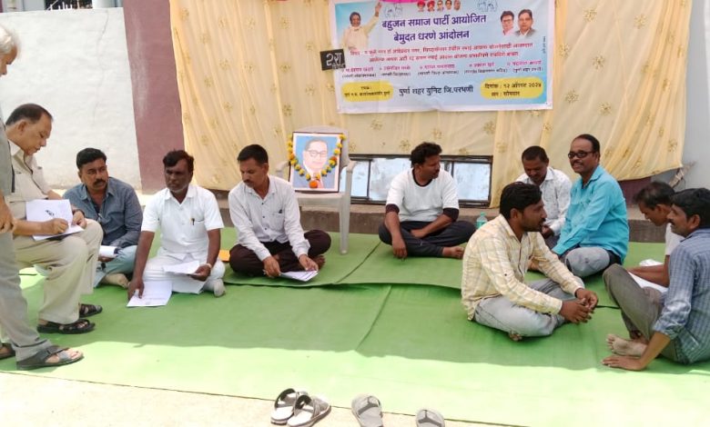 पूर्णा.न.प. कार्यालया समोर बहुजन समाज पार्टी च्या वतीने बेमुदत धरणे आंदोलन चा 2 रा दिवस