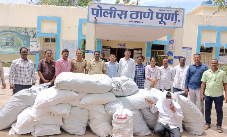 दिनांक 8 सप्टेंबर रोजी रविवारी सकाळी साडेअकराच्या सुमारास आरोपी पवन कुमार द्वारकादास मोदींना यांच्या घरावर परभणी जिल्हा स्थानिक गुना शाखेचे पोलीस उपनिरीक्षक चंदन सिंग राम सिंग परिहार , सचिन भदरगे, परसराम गायकवाड, हनुमान ढगे, रंगनाथ दुधाटे, सिद्धेश्वर चाटे, राम पौळ, नामदेव डूबे, दिलीप निल बदरेवार, जयश्री आव्हाड, या स्थानिक गुन्हा शाखा पथकाने व पुन्हा पोलीस स्टेशन येथील स.पो.नि.सोमनाथ शिंदे, पी एस आय प्रकाश इंगोले, अण्णा मानेमोईनवाड , पी एस आय रामकिशन चव्हाण , अजय माळकर आसे स्थानिक गुना शाखा अधिकारी कर्मचारी व पूर्णा पोलीस स्टेशन येथील अधिकारी व कर्मचारी यांच्या संयुक्त विद्यमाने घरी छापा मारला असता त्याच्या घरामधूनचार पोत्याच्या बोऱ्या ज्यामध्ये राजनिवास सुगंधी पान मसाल्याची पाकीट मिळून आले तसेच दुसऱ्या बोऱ्यांमध्ये जवळपास विमल गुटखा बंदी असलेला मोठ्या प्रमाणात मिळवला त्यानंतर तिसऱ्या बोऱ्यांमध्ये विनापरवाना विना विक्रीसाठी असलेला जर्दा मोठ्या प्रमाणात दिसून आला तर काही ठिकाणी प्रतिबंधित असलेल्या गुटखा मोठ्या प्रमाणात पथकाला मिळून आल्या त असा मिळालेला माल पाहून पथक चक्रावून गेलेत दरम्यान या जप्त केलेला गुटखा तब्बल 4 लाख 87 हजार 778 रुपये किमतीचा आहे याप्रकरणी आरोपी पवन कुमार द्वारकादास मोदानी राहणार आनंदनगर ,आरोपी सय्यद हसन सय्यद अली याच्याविरुद्ध पूर्णा पोलीस ठाण्यात कलम 123 223 274 275 49 कलम 2006 प्रमाणे गुन्हा दाखल करण्यात आला आहे या प्रकरणाचा अधिक तपास गुन्हा अन्वेषण शाखा व स्थानिक पथक करत आहे दरम्यान पूर्णेत सर्वत्र अवैध धंदे पोलीस निरक्षक विलास गोबाडे व बिट जमादाराच्या आशिर्वादाने बोकाळले आहे त्यामुळे परभणी पथकाच्या या धाडी मुळे स्थानिक पोलिसांनी चांगलीच चपराक मानली जात आहे