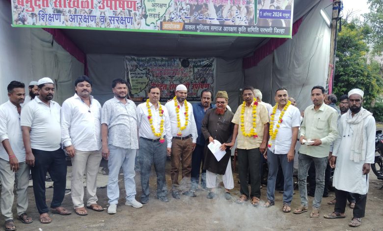 आरक्षण आणि मुस्लिम समाजाच्या इतर महत्वाच्या मागण्यासाठी मागच्या ५६ दिवसापासून परभणी येथील सकल मुस्लिम समाज बांधवांच्या कडून साखळी