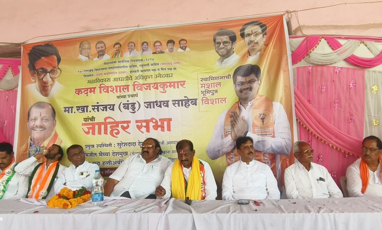 ताडकळस: गंगाखेड विधानसभा मतदारसंघाचे महाविकास आघाडीचे उमेदवार म्हणून शिवसेना पक्षप्रमुख उद्धव ठाकरे यांनी दोनदा विशाल कदम यांच्या माध्यमातून शेतकरी पुत्राला उमेदवारी दिली असून विधानसभेत शेतकऱ्यांचा आवाज बनण्यासाठी महाविकास आघाडीचे अधिकृत उमेदवार विशाल कदम यांना बहुमताने विजयी करण्याचे आवाहन शिवसेना उपनेते खा.संजय जाधव यांनी ताडकळस येथील जाहीर सभेत केले.
