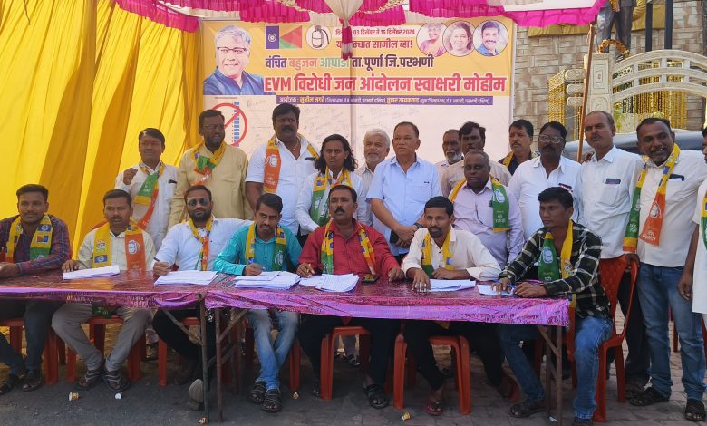 पूर्णा:- शहरातील डॉ बाबासाहेब आंबेडकर चौक येथे दि ९ डिसेंबर सोमवार आठवडी बाजाराच्या दिवशी ही मोहिम राबविण्यात आली यावेळी हजारो नागरिकांनी युवक महिलांनी सहभाग नोंदवला. यावेळी वंचित बहुजन आघाडीचे जिल्हाध्यक्ष सुनिल मगरे, युवा जिल्हाध्यक्ष तुषार गायकवाड, दादाराव पंडित,उत्तम खंदारे,प्रकाश कांबळे,देवराव खंदारे, अशोक कांबळे,शामराव जोगदंड,राहूल कचरे,ॲड सिद्धांत गायकवाड,अमृत कऱ्हाळे,अजय काळे, राहूल भगत कैलास खारे,पवन गायकवाड ,यांच्यासह वंचित आघाडी च्या कार्यकर्त्यांनी स्वाक्षरी मोहिम राबविण्यासाठी प्रयत्न केले