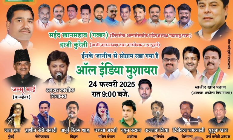 पूर्णेत रंगणार 24 फेब्रुवारीला नामवंत शायर, कविचा मुशायारा कार्यक्रम