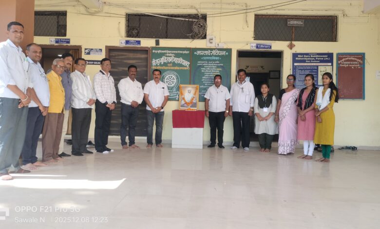 पूर्णा : आज दिनांक 08 ऑक्टोबर रोजी श्री गुरुबुद्धिस्वामी महाविद्यालय पूर्णा येथे श्री संत संताजी जगनाडे महाराज यांची जयंती उत्साहात साजरी करण्यात आली. श्री संत संताजी जगनाडे महाराज यांच्या प्रतिमेला महाविद्यालयाचे उपप्राचार्य डॉ.गजानन कुरुंदकर यांनी पुष्पहार अर्पण केले. यावेळी उपप्राचार्य डॉ. शिवसांब कापसे, पर्यवेक्षक उमाशंकर मिटकरी उपप्राचार्य डाफने, वसंतराव कदम, संजय कापुरे,मंचक वळसे, नागोराव सावळे, दत्ता जाधव, गजानन भालेराव, महाविद्यालयीन विदयार्थी व विद्यार्थिनी यांची उपस्थित होती.हा कार्यक्रम राष्ट्रीय सेवा योजना (NSS)तर्फे आयोजित करण्यात आला होता.