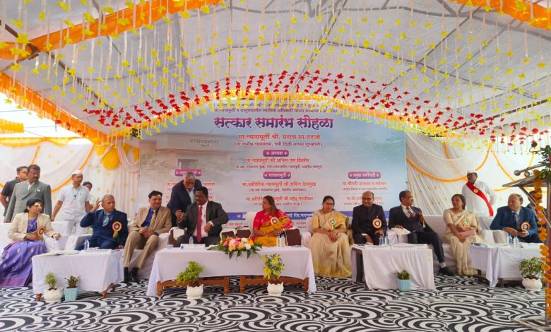 परभणी / पूर्णा: येथील पूर्णा वकील संघाच्या वतीने मा. उच्च न्यायालय, मुंबई येथे नवनियुक्त झालेले मा. न्यायमूर्ती आणि तालुक्यातील न्यायिक अधिकारी यांच्या सन्मानार्थ दिवाणी व फौजदारी न्यायालय परिसरात १४ डिसेंबर २०२५ रोजी भव्य सत्कार समारंभ आयोजित करण्यात आला होता.या कार्यक्रमास सर्वोच्च न्यायालयाचे न्यायमूर्ती प्रसन्न भा.वराळे यांच्यासह उच्च न्यायालयातील अनेक न्यायमूर्तींची विशेष उपस्थिती लाभली.या समारंभाचे अध्यक्षस्थान मा. न्यायमूर्ती अनिल एस.किलोर (प्रशासकीय न्यायमूर्ती,खंडपीठ नागपूर) यांनी भूषवले. मा. न्यायमूर्ती ए.एल. पानसरे हे प्रमुख पाहुणे म्हणून उपस्थित होते.मा. न्यायमूर्ती वराळे यांच्या शुभहस्ते दीपप्रज्वलन करून कार्यक्रमाची सुरुवात झाली. स्वागत गीताने मान्यवरांचा स्वागत करण्यात आलासत्कारमूर्ती मा. अतिरिक्त न्यायमूर्ती पी.सचिन देशमुख आणि मा.अतिरिक्त न्यायमूर्ती.महेंद्र नेरलीकर यांचा पूर्णा वकील संघातर्फे विशेष सन्मान करण्यात आला. मान्यवरांनी आपल्या मार्गदर्शनात न्यायव्यवस्थेतील आव्हाने, युवा वकिलांची भूमिका आणि सामान्य नागरिकांना त्वरित न्याय मिळवून देण्यासाठी वकिलांनी करायचे प्रयत्न,यावर भाष्य केले.सर्वोच्च न्यायालयाचे न्यायमूर्ती वराळे यांनी आपल्या अध्यक्षीय भाषणात पूर्णा वकील संघाने न्यायमूर्तींचा सत्कार करून दाखवलेली एकता आणि आदरभाव कौतुकास्पद असल्याचे सांगितले.कार्यक्रमाचे यशस्वी आयोजन वकील संघ,पूर्णा जि. परभणी यांनी केले. सदर कार्यक्रमामुळे न्यायिक अधिकारी आणि वकील यांच्यात समन्वय वाढण्यास मदत झाली,असे मत पूर्णा वकील संघाचे अध्यक्ष सुरेश सूर्यवंशी यांनी व्यक्त केले. सूत्रसंचालन वकील संघाचे सचिव ए.बी. शेख व एडवोकेट शिरसाट त्यांनी केले आभार प्रदर्शन ए.बी.शेख यांनी केले कार्यक्रमाच्या समारोपात स्नेहभोजनाचे आयोजन करण्यात आले होते. कार्यक्रम यशस्वी करण्यासाठी वकील संघाचे उपाध्यक्ष एडवोकेट हिरानंद, कोषाध्यक्ष स्वप्निल कुमार जमदाडे, वैजनाथ लांडे, प्रमोद खंदारे, सिद्धांत गायकवाड, एम.बी. जोगदंड, एडवोकेट एम ए. सईद, एस पी सोनी, एस जी मोहिते, आर.ए. देवकते, ओमराज वाळवंटे, जी.एन. डाखोरे, गोविंद शिंदे, वाय.एस.डाखोरे, वाहेद अहमद, अब्दुल हफिज, सूर्यकांत काळे, सोवियत जोगदंड इत्यादी विधीज्ञानी व वकील संघातील सर्व सदस्यांनी परिश्रम घेतले.